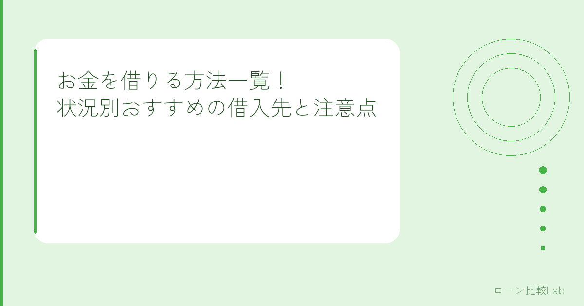 お金を借りる方法一覧!状況別おすすめの借入先と注意点